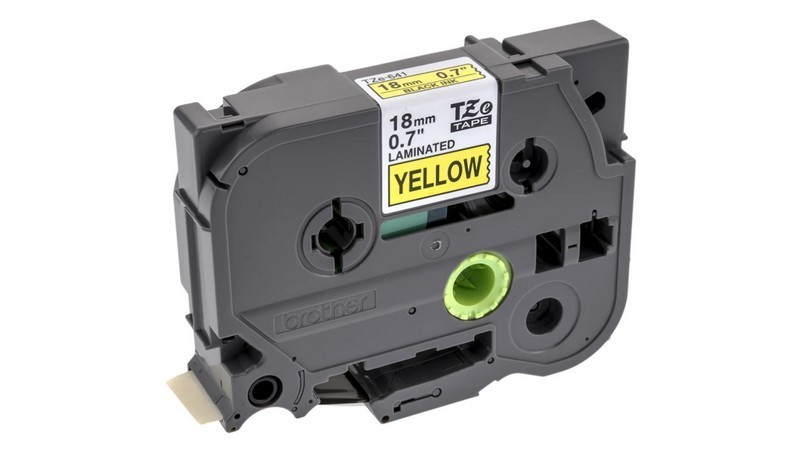 Cinta laminada Brother TZe-641 negra sobre amarillo (18 mm) resistente y visible para etiquetas duraderas en entornos exigentes.