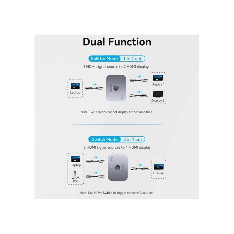 SWITCH/SPLITTER VENTION HDMI 2.1/H - X2HDMI/H USB-C/H BIDIRECCIONAL 8K
