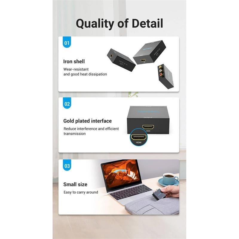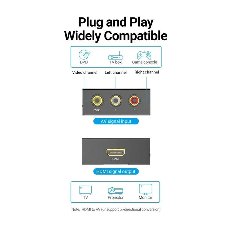 Convierte fácilmente tus dispositivos RCA clásicos a HDMI con calidad Full HD 1080p, ideal para disfrutar contenido antiguo en pantallas modernas sin complicaciones.