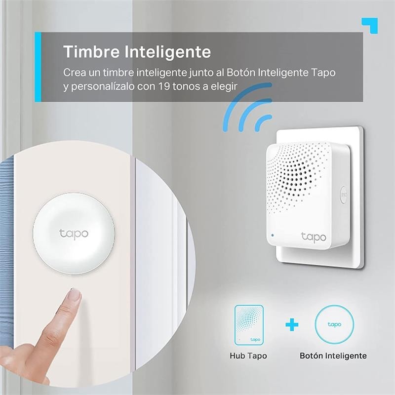 - Timbre inteligente. Junto al Botón Inteligente Tapo crea y personaliza tu timbre de casa con 19 tonos a elegir.