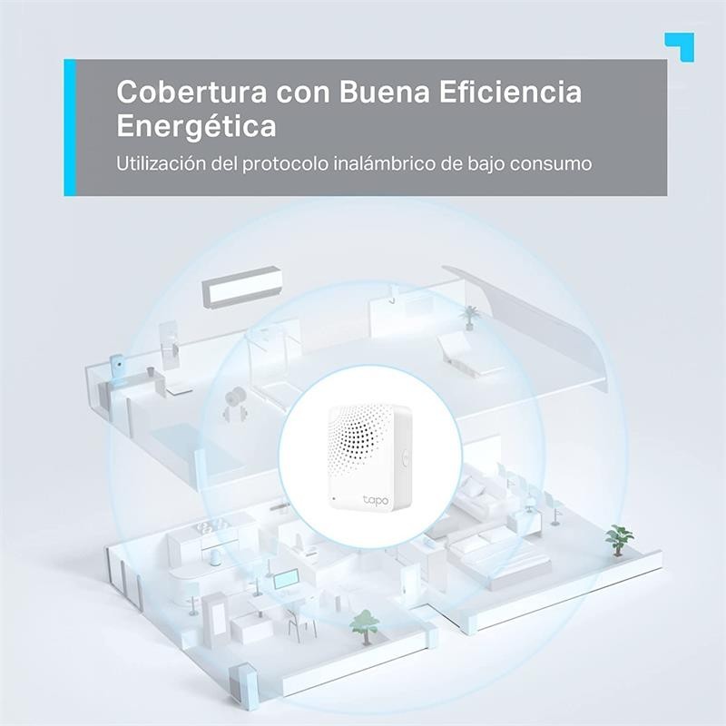 El Hub Tapo H100 es el cerebro del hogar inteligente Tapo. Con el protocolo inalámbrico de bajo consumo puedes conectar todos los dispositivos de manera eficiente para que consuman menos energía, reduciendo la factura eléctrica y alargando la vída de las baterías hasta 10 veces más . Tapo Hub H100 se comunica a través de una banda de frecuencia más baja y menos saturada con los dispositivos inteligentes, para llegar más lejos y sin interferencias.