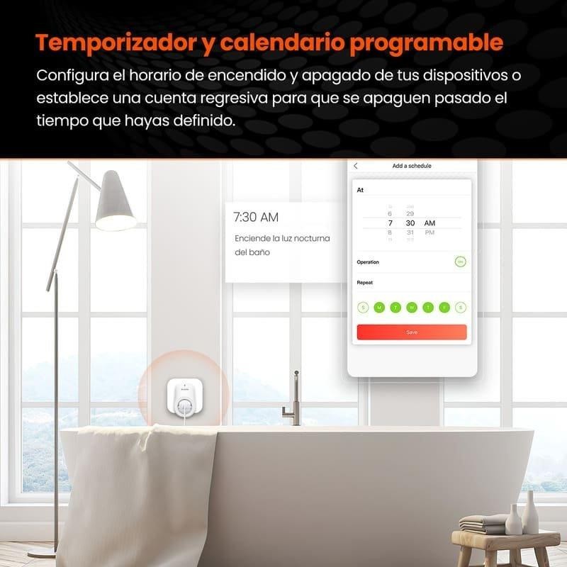 - Control Inteligente para la Vivienda, Fácil y Eficiente. Mantenga el control, creando un plan de energía programado, de modo que, si apaga la luz al amanecer, enciende la cafetera mientras se ducha o enciende las luces al anochecer, tu estableces las reglas.