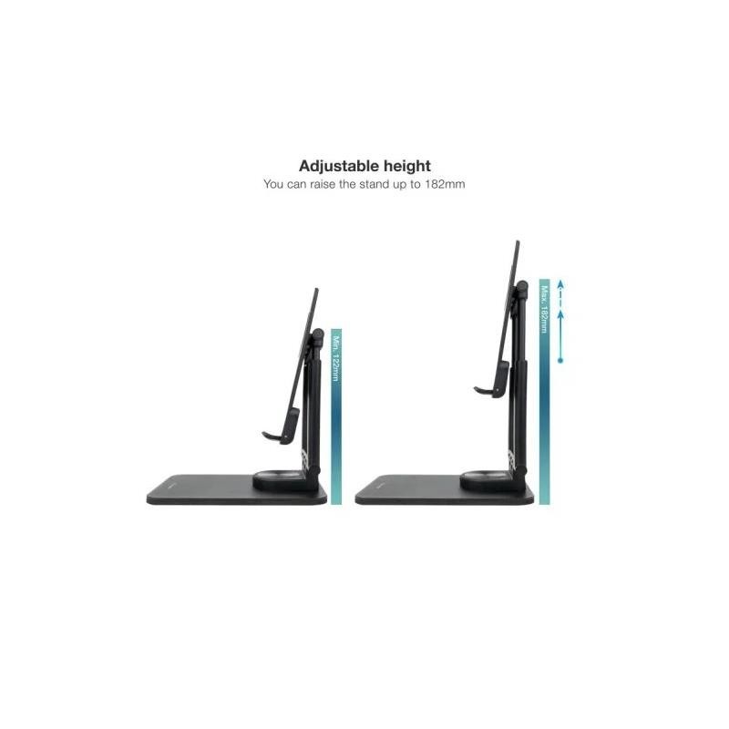 Hermes Halley es el nuevo soporte de TooQ para tablet de hasta 12,9? te ofrecen toda la comodidad y libertad de movimiento que necesites en cada momento. Podrás girarlos 360º para tener un amplio rango de visión. Gracias a sus almohadillas antideslizantes la estabilidad de la tablet está garantizada. Y como pueden plegarse, podrás guardarlos fácilmente y llevarlos contigo hasta el infinito y más allá.