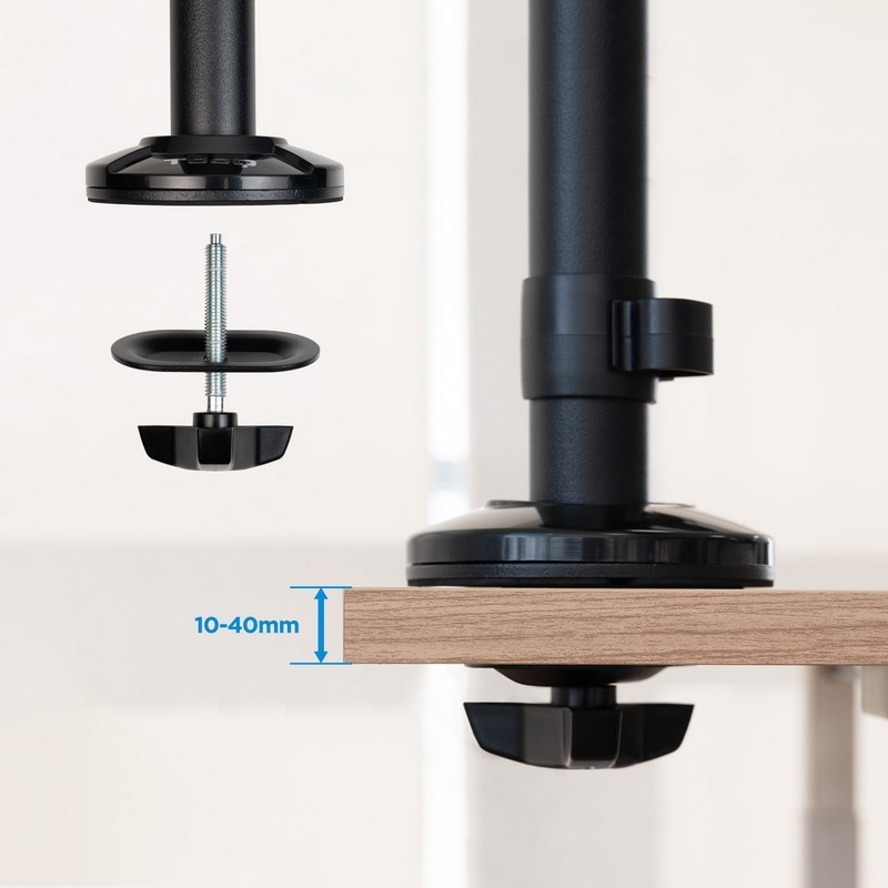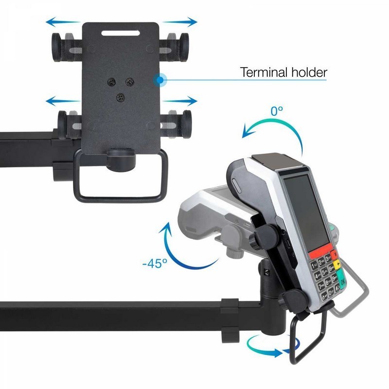 Optimiza tu punto de venta con el Soporte AVPos Multi-Stand, la solución definitiva para organizar tu TPV. Este brazo articulado permite montar dos monitores de hasta 32", una impresora de tickets y un terminal de pago, creando un espacio de trabajo profesional, ergonómico y despejado. Su robusta construcción en metal y sistema de gestión de cables garantizan una instalación limpia y duradera.