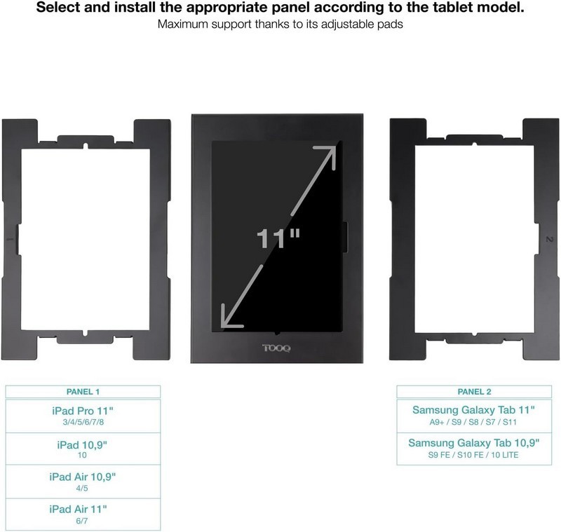 Marco antirrobo para tablet de 10,9" a 11", ideal para entornos comerciales y puntos de información con máxima seguridad.