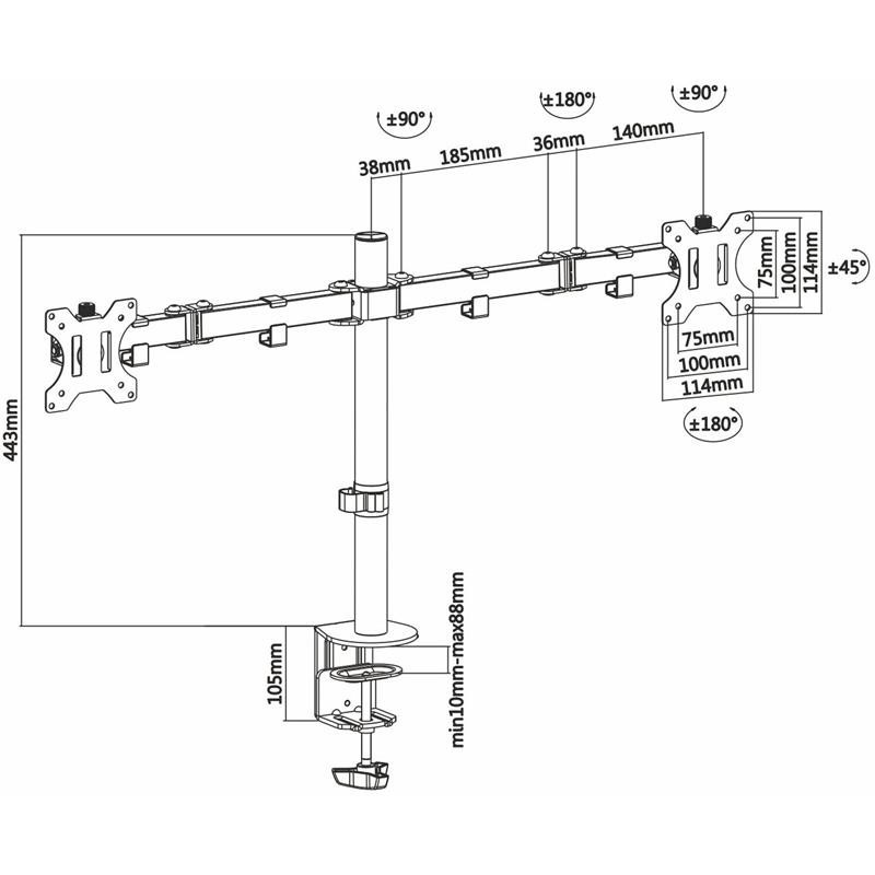 Soporte de mesa eco giratorio e inclinable para monitor/TV (3 pivotes, 2 brazos) de 13?-32?