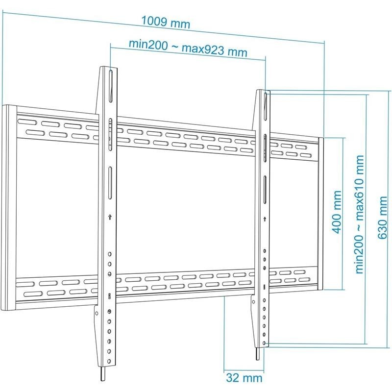 Soporte de fijación en pared para pantallas planas (entre 60" y 100") y hasta un máximo de 130 kg de peso Fabricado en metal de alta resistencia, siempre con la calidad de los productos TooQ