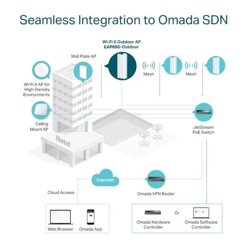 - Tecnología Omada Mesh: permite la conectividad inalámbrica entre los puntos de acceso para un alcance extendido y una implementación flexible. 3