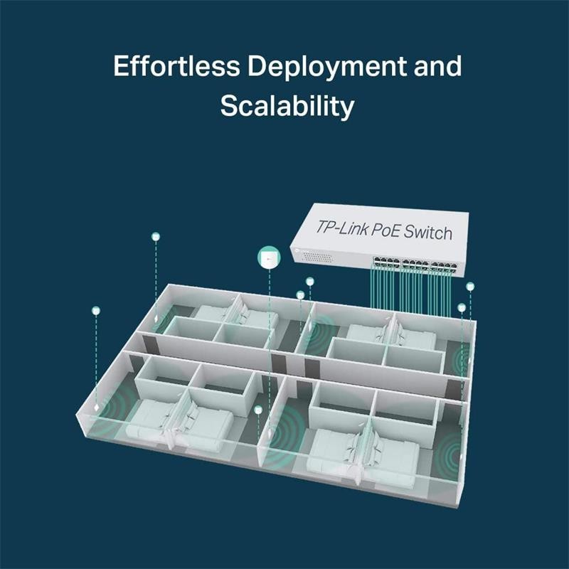 Un EAP en cada habitación garantiza una fuerte señal inalámbrica y permite a sus huéspedes disfrutar de su propia red Wi-Fi privada.