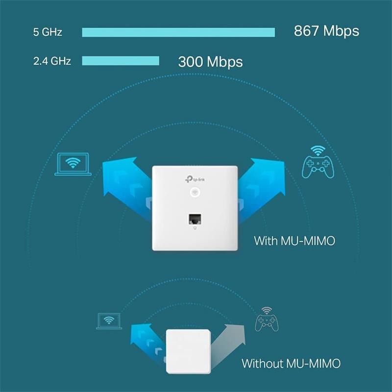 - Wi-Fi rápido de doble banda: 300 Mbps simultáneos en 2.4 GHz y 867 Mbps en 5 GHz suman 1.167 Mbps de velocidad de Wi-Fi con MU-MIMO.