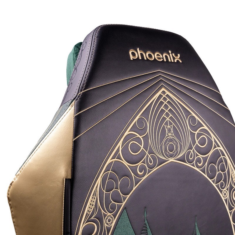La silla gaming Monarch Edición Rivendell nace de la unión entre los maestros artesanos élficos y la casa Phoenix, inspirada en la belleza serena y la sabiduría ancestral del refugio de Elrond. Su diseño, en verde profundo con filigranas doradas, evoca los bosques otoñales y la luz dorada del atardecer sobre las torres élficas. En su respaldo destaca un emblema estelar bordado con más de 800.000 puntadas, símbolo de la armonía y la perfección de los Altos Elfos.