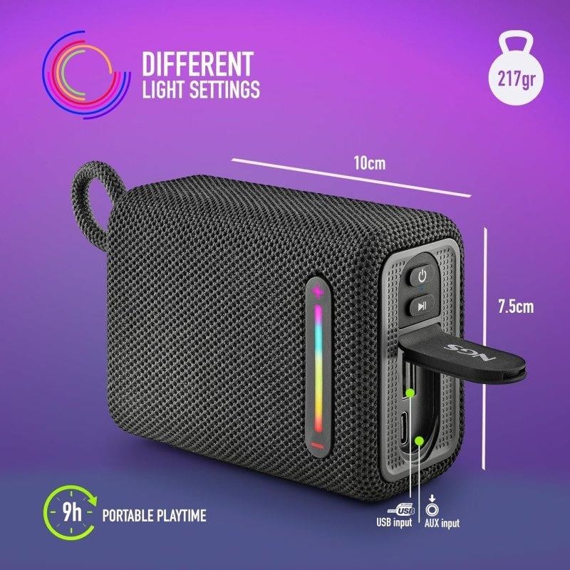 ALTAVOCES NGS ROLLER FURIA RGB PORTATIL WATERPROOF IPX6/BT/USB/AUX BLACK