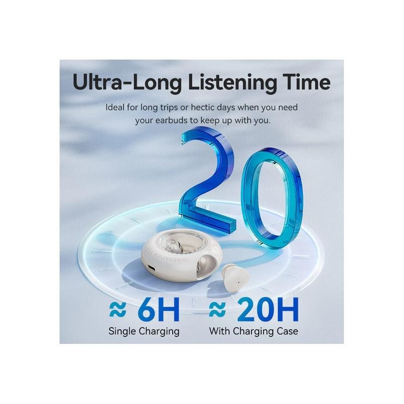 20 horas de autonomía total: 6 horas con los auriculares + 14 horas adicionales con el estuche de carga.