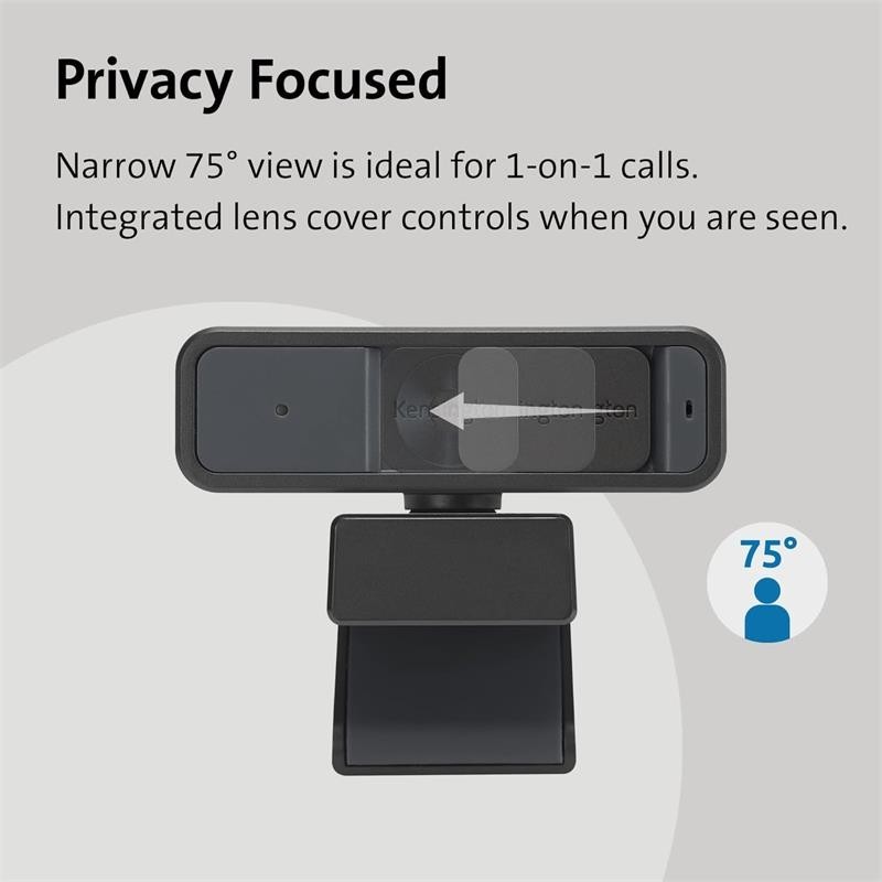 La Webcam W2000 1080p Auto Focus de Kensington ofrece vídeo de alta calidad (1080p a 30 fps), un micrófono omnidireccional y características únicas de privacidad, colocación de la cámara y generación de imágenes en condiciones de poca luz. La W2000 está diseñada para ayudarle a tener buen aspecto en las modernas aplicaciones de videoconferencia y forma parte del ecosistema de videoconferencias profesionales de Kensington, una potente experiencia de software y accesorios cohesionada que le ofrece todo el potencial que necesita para pasar más tiempo colaborando y menos resolviendo problemas. Tanto si trabaja desde casa o en la oficina, la W2000, simplemente, mejora su aspecto en Microsoft Teams, Google Meet, Zoom, etc.