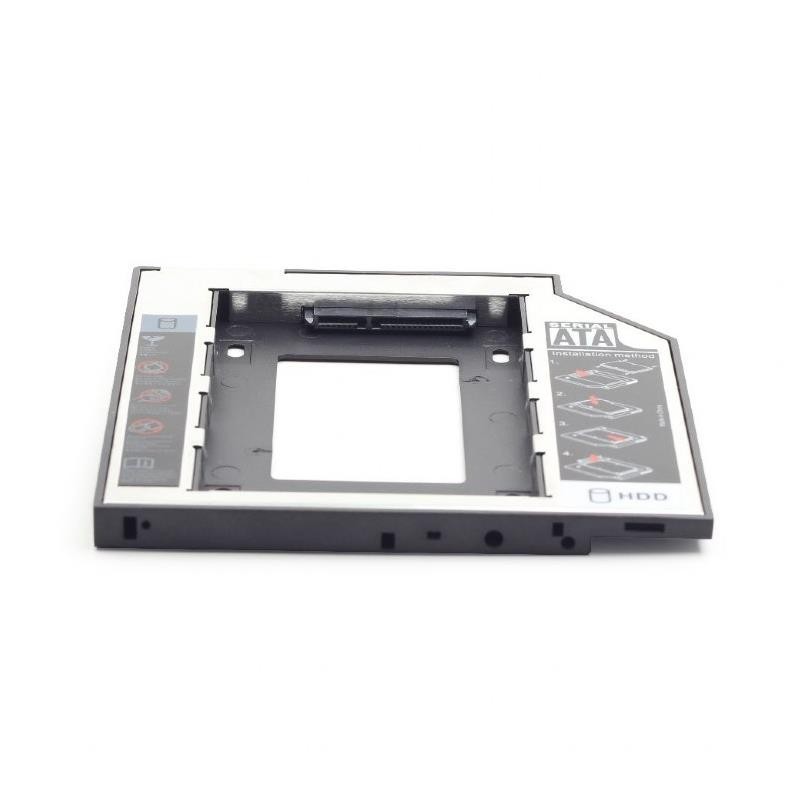 - Este marco de montaje delgada práctica se puede instalar en una delgada 5.25" ranura SATA libre en su PC o portátil delgado . Se puede instalar en lugar de la unidad de DVD - ROM. Esto le permite utilizar un disco duro SATA extra de 2.5".