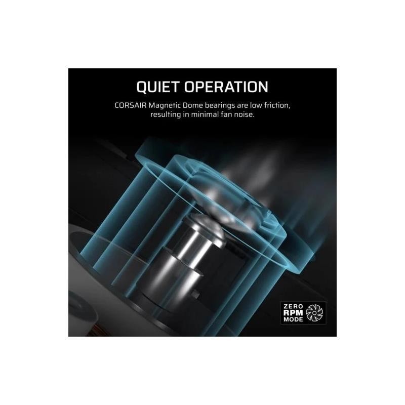 - ALTO FLUJO DE AIRE? Y PRESIÓN?ESTÁTICA. Los ventiladores RS120 brindan un potente flujo de aire con alta presión estática para impulsar el aire a través del radiador. La tecnología CORSAIR AirGuide y los rodamientos de cúpula magnética garantizan un excelente rendimiento de refrigeración manteniendo el ruido al mínimo.