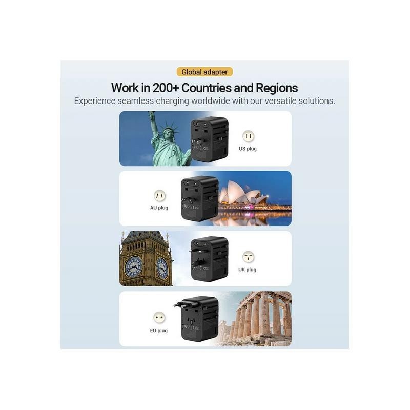 Múltiples enchufes, compatible a nivel global: Funciona en distintos países, ideal para viajes internacionales.