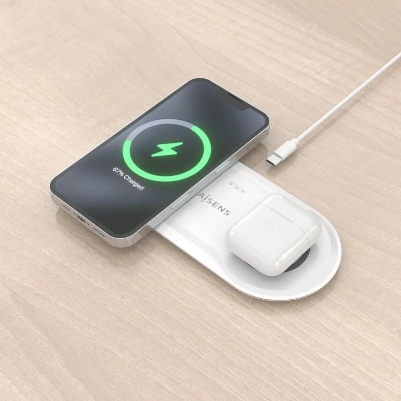BASE DE CARGA AISENS WIRELESS SMARTPHONE/AURICULAR 15W USB-C WHITE