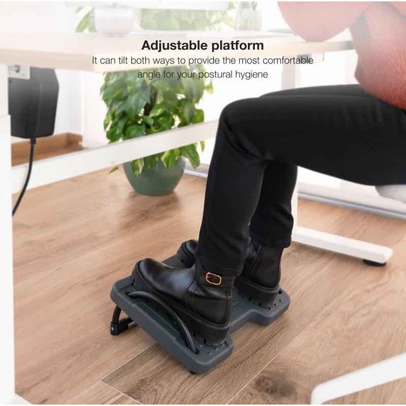 Disfruta de la comodidad de trabajar en casa o en la oficina con nuestro reposapiés TooQ TQFR0601-G. Este accesorio te permitirá adoptar una postura saludable y sentirte más confortable mientras realizas tus actividades cotidianas. Es totalmente ajustable a tus preferencias. Disponible en color gris.