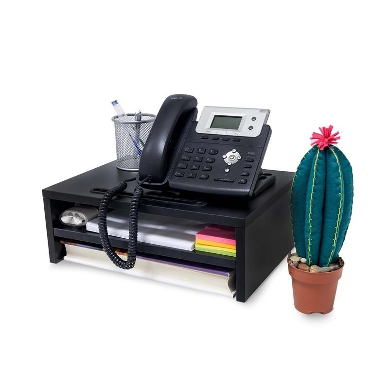 Multifunción: Soporte ideal para monitor, ordenador portátil con gestión para cables y ranura para colocar su Smartphone o Tablet. Mantenga su espacio de trabajo limpio y ordenado con espacio para colocar su teclado o documentos en sus estantes.