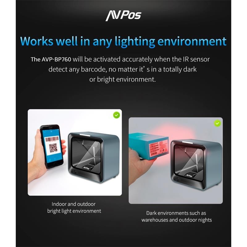 El lector de códigos de barras AVPos BP760 es una herramienta avanzada para la captura precisa y eficiente de códigos 1D y 2D.